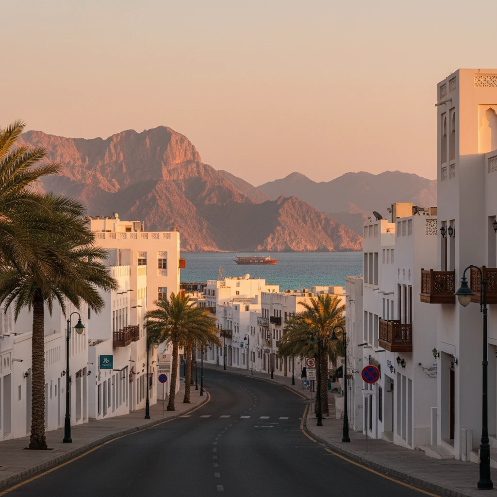 مسقط روی یک نوار ساحلی طولانی و باریک کشیده شده؛ شهری بدون برجهای بلند، بدون ساختوسازهای غولآسا و بدون زرقوبرق. در عوض، بیشتر خانهها سفید یا کرمیاند و حداکثر سه تا پنج طبقه ارتفاع دارند.